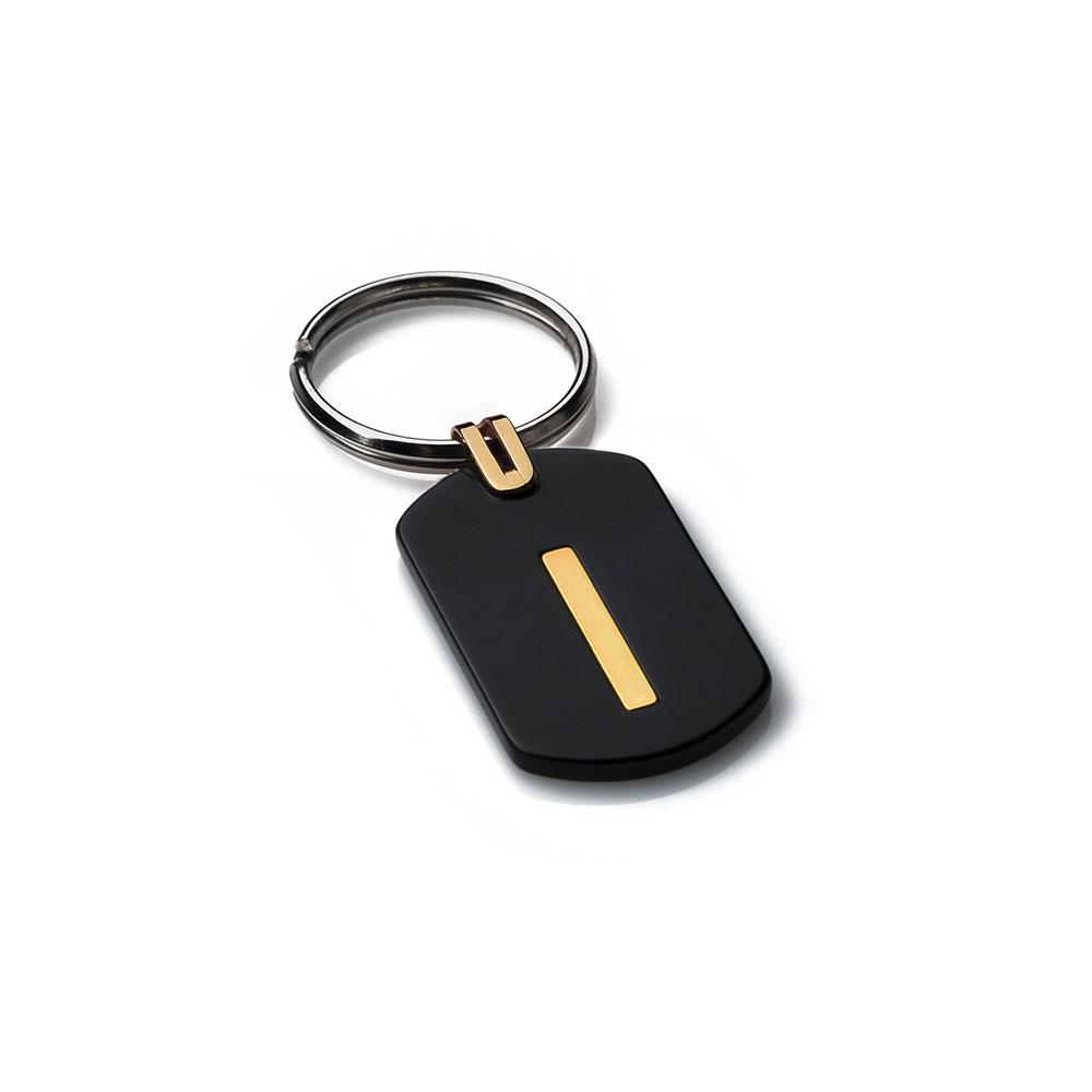 I-Gold 18K pink gold key ring. The geometric style of the gold detail lends a contemporary edge to a classic desigs. The bold rectangular shape of this keyring makes a graphic style statement. This item is the proper home for any set of keys.