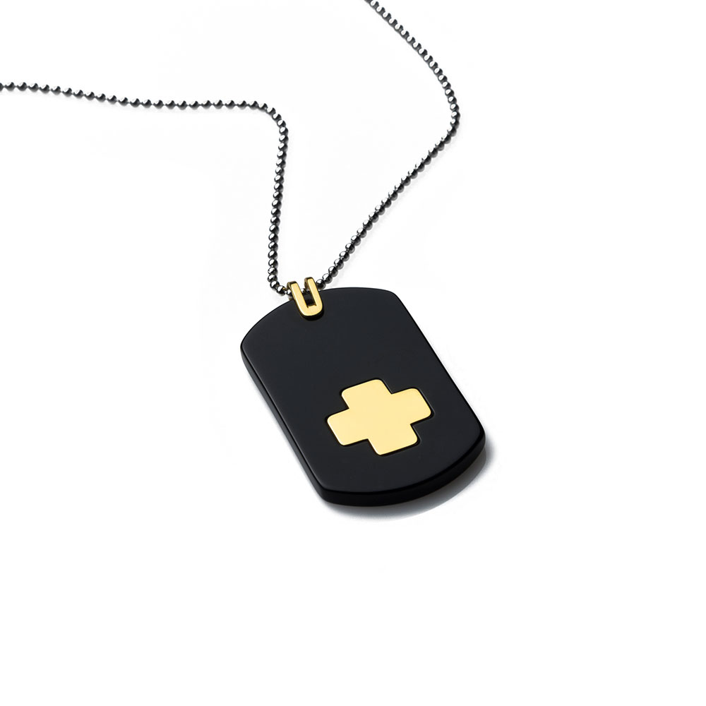 Crux 14K yellow gold dog tag ball chain necklace. This necklace is something minimal that feels personal and matches with any personal style. This piece is perfect for every day and occassion.